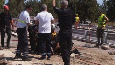“Fue un accidente, él nos explicaba la maniobra que teníamos que realizar y pisó y se fue. Al toque llamamos a la ambulancia”, contó otro de los obreros. El hombre accidentado es su jefe, quien se precipitó unos ocho metros desde el suelo cuando impartía instrucciones.