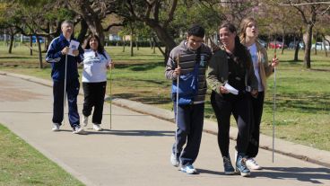 El Centro de Rehabilitación para personas con discapacidad visual, Luis Braille, realizó este jueves por la mañana un paseo por el Parque de las Colectividades para celebrar y difundir sus actividades. En 1970, la Federación Internacional de Ciegos declaró el 15 de octubre como Día Internacional del Bastón Blanco