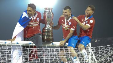 1 de 9 | No pudo ser. Chile le ganó por penales a la Argentina y se quedó con la Copa América. (EFE)2 de 9 | Alexis Sánchez pica la pelota y convierte su penal definitivo. (EFE)3 de 9 | Así festejaron los jugadores chilenos en medio de la cancha tras el penal final. (EFE)4 de 9 | Con el alma. El jugador del Arsenal de Inglaterra tras convertir desde los 12 pasos. (EFE)5 de 9 | No lo pueden creer. Chile ganó su primera Copa América. (EFE)6 de 9 | Lio Messi y todo el plantel sin consuelo tras perder por penales. (EFE)7 de 9 | Medel y compañía sostienen la copa en los festejos. (EFE)8 de 9 | Arturo Vidal levanta el preciado trofeo. Chile ganó el torneo en su propio país.9 de 9 | Los chilenos contentos en las tribunas tras la obtención del título en la ciudad de Santiago. (EFE)