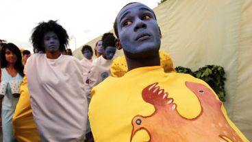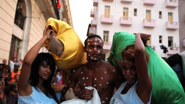 Cuerpos pintados: la actividad colorida en una muestra de arte en Cuba