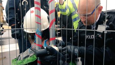 Ecologistas invadieron una pista y se encadenaron en el aeropuerto de Londres