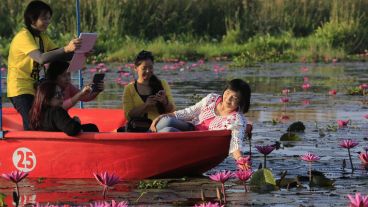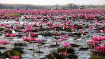 El lago repleto de flores de Loto que cautiva a los turistas en Tailandia