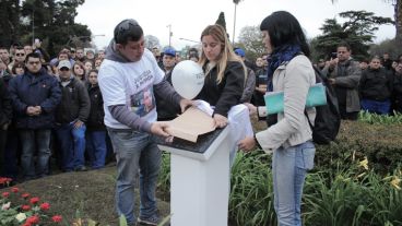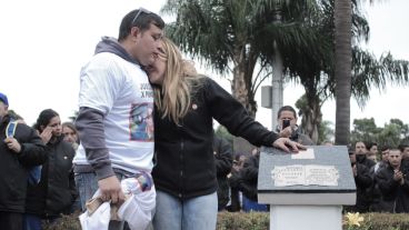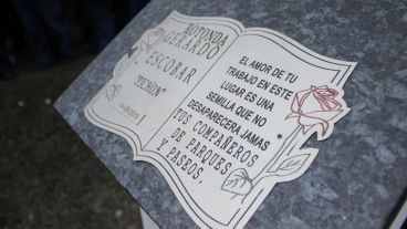 Este jueves por la mañana, familiares y amigos de Pichón, el joven encontrado muerto en el río Paraná luego de salir del bar La Tienda, realizaron el descubrimiento de una placa en la rotonda de Oroño y Pellegrini, lugar donde la víctima frecuentaba para trabajar en las tareas de parques del municipio. Las imágenes