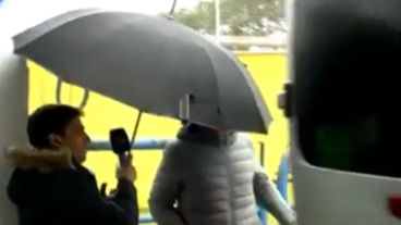 "Vamos a corrernos, guarda que está entrando una camioneta", alcanzó a decir el periodista Juan Pedro Aleart en medio de una entrevista con el secretario de Seguridad Deportiva Diego Maio para el móvil en vivo en De 12 a 14 (El Tres). Lo que siguió fue una trafic blanca que irrumpió en el plano y estuvo a centímetros de atropellarlos.