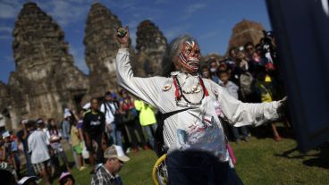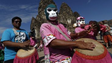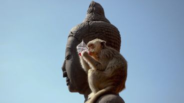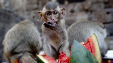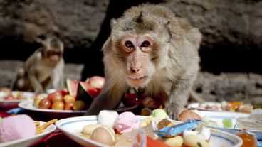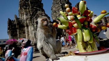 En la ciudad de Lopburi del país asiático se realizó este domingo el “Festival Buffet Mono”, que consiste en dejarle gran cantidad de comida a estos ejemplares en agradecimiento por promover el turismo en esa localidad. De esta manera, los simios invadieron el templo Phra Prang Sam Yod para llenarse la panza