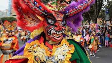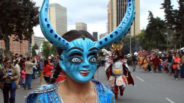 1 de 7 | Festejos en Bogotá al cumplirse 477 años de su fundación. (EFE)2 de 7 | Miles de personas salieron a las calles para realizar el tradicional carnaval. (EFE)3 de 7 | Máscara azul para bailar en el carnaval en plena calle. (EFE)4 de 7 | Más de 2000 artistas de diferentes etnias y poblaciones hacen parte del evento. (EFE)5 de 7 | Las calles de Bogotá se tiñeron de color para la jornada especial. (EFE)6 de 7 | Integrantes de una comparsa del Carnaval de Oruro (Bolivia) participan como invitados en el desfile. (EFE)7 de 7 | Bogotá cumplió 477 años y lo festejaron a todo color. (EFE)