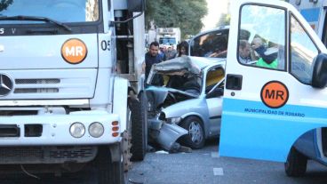 1 de 9 | Accidente fatal este jueves por la mañana en Pellegrini y Paraguay. (Alan Monzón/Rosario3)2 de 9 | Un Chevrolet Corsa impactó contra un camión recolector de basura que se encontraba detenido. (Alan Monzón/Rosario3)3 de 9 | Cuatro jóvenes murieron en el acto. Distintas fuerzas trabajaron en el lugar del hecho. (Alan Monzón/Rosario3)4 de 9 | Decenas de curiosos se acercaron a Pellegrini y Paraguay. (Alan Monzón/Rosario3)5 de 9 | La fiscal Mariana Prunotto inspeccionó la escena. (Alan Monzón/Rosario3)6 de 9 | El auto quedó destruido en su parte delantera. (Alan Monzón/Rosario3)7 de 9 | Curiosos a varios metros del lugar del siniestro este jueves por la mañana. (Alan Monzón/Rosario3)8 de 9 | Así retiraban el auto donde iban las víctimas. (Alan Monzón/Rosario3)9 de 9 | Prunotto indicó que se revisarán las cámaras de la zona para determinar la velocidad del auto. (Alan Monzón/Rosario3)
