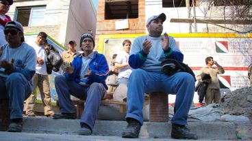 Trabajadores de la comunidad de la construcción se convocaron este miércoles por la mañana frente a la obra donde falleció el profesional el pasado lunes a manos de delincuentes. Las imágenes