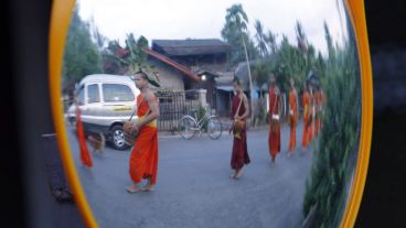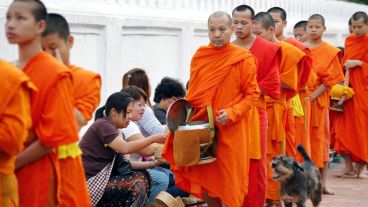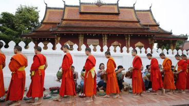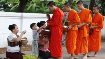 Fotogalería: monjes y turistas comparten un ritual en Laos