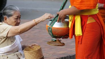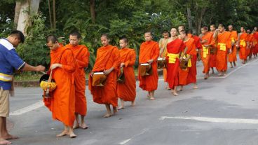 En la ciudad de Luang Prabang del país asiático, un grupo de budistas realiza contacto por la mañana con turistas y residentes en busca de comida que son ofrendas como parte de una tradición. Las imágenes