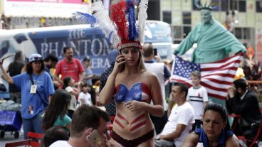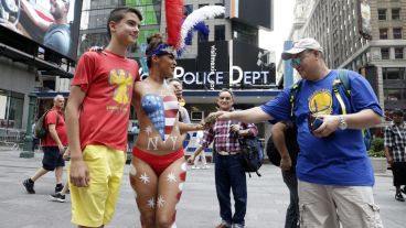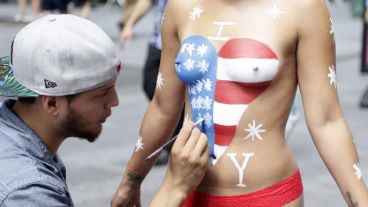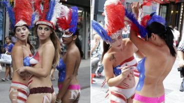Se trata de un grupo de chicas y chicos que decidieron llamar la atención en pleno centro de Manhattan y caminaron con los colores estadounidenses pintados en sus cuerpos por uno de los lugares más transitados y turísticos del mundo. Las imágenes