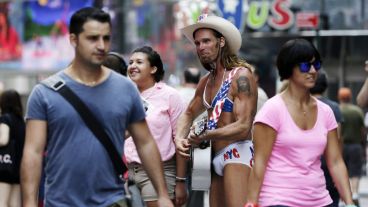 Fotogalería: un paseo con poca ropa en pleno Times Square