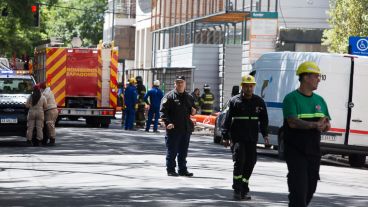 Trabajadores de una obra en construcción en Rivadavia y Balcarce rompieron por error un caño que produjo la gran pérdida. Litoral Gas, bomberos, policías y personal de emergencia de la Municipalidad asistieron este miércoles por la mañana al lugar para controlar la fuga. Imágenes