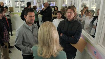 Maxi Rodríguez y Diego Mateo se acercaron este lunes al mediodía hasta la sala de Neonatología para dejar las donaciones que se juntaron en el club por el Día del Niño. Las imágenes