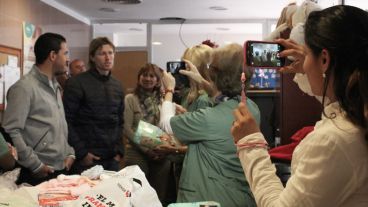 1 de 8 | Maxi Rodríguez y Diego Mateo llevaron donaciones a la Maternidad Martin. (Rosario3.com)2 de 8 | La "Fiera" dijo presente este lunes al mediodía para acercar las donaciones por el Día del Niño que se hicieron en el club. (Rosario3.com)3 de 8 | Una mesa repleta de donaciones fueron entregada para el sector de Neonatología. (Rosario3.com)4 de 8 | Algunas leprosas que trabajan en la Maternidad aprovecharon para sacarle fotos a sus ídolos. (Rosario3.com)5 de 8 | Hubo tiempo para una foto con el capitán leproso. (Rosario3.com)6 de 8 | Algunos hinchas se acercaron para pedir autógrafos. (Rosario3.com)7 de 8 | Las donaciones se juntaron especialmente en partidos donde la Lepra jugó de local. (Rosario3.com)8 de 8 | La "Fiera" y "Pomelo" este lunes en la Maternidad. (Rosario3.com)