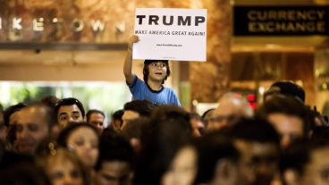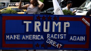 Un grupo de personas se manifestó en las afueras del edificio donde el precandidato a presidente de los Estados Unidos estaba desarrollando una conferencia de prensa. Los reclamos se generaron por las fuertes críticas del multimillonario al país centroamericano. Las fotos