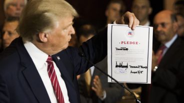 6 de 6 | Trump sostiene un compromiso que firmó para permanecer en el partido republicano, incluso si no se convierte en el candidato para las presidenciales. (EFE)