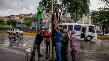 1 de 6 | "La quema de Judas". La curiosa protesta en Venezuela contra el gobierno de Barack Obama. (EFE)2 de 6 | Un hombre arma un muñeco representando a los Estados Unidos. (EFE)3 de 6 | El muñeco de Obama que luego será incendiado. (EFE)4 de 6 | Aseguran que es una tradición que tiene un significado simbólico de justicia popular. (EFE)5 de 6 | Sin piedad. El muñeco de Obama arde en rechazo a las políticas de Estado del país del norte. (EFE)6 de 6 | También hubo críticas al actual presidente de Venezuela Nicolás Maduro. (EFE)