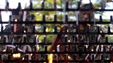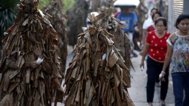 Cientos de devotos cubren sus cuerpos de barro y hojas secas de plátano para pedirle a San Juan Bautista que cumpla sus deseos y que las cosechas sean abundantes, para lo cual también encienden velas. Las fotos