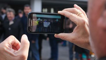 7 de 8 | Un hombre toma una foto al grupo de manifestantes frente a la Maternidad Martin. (Rosario3.com)