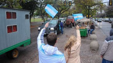 Después de una noche de acampe a la vera de la ruta Rosario-Buenos Aires, un grupo de productores agropecuarios llegó este mediodía al Monumento para reclamar por mejores políticas públicas para el campo (ver fotogalería). El “tractorazo” fue organizado por la agrupación Chacareros de Pie (CP) en bajo el pabellón nacional los esperaban algunas figuras de la política local, entre ellas el diputado nacional y candidado a senador Hermes Binner y el actual senador y candidato Carlos Reutemann.