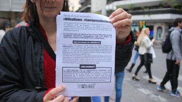 Integrantes de la organización Mujeres de la Matria Latinoamericana (Mumalá) se reunieron en plaza Pringles este viernes para expresar su reclamo para que se declare dicha ley de protección. Además se realizaron encuestas referidas a la temática