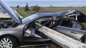 Por motivos que se desconocen, el conductor de un Mercedes Benz perdió el control del volante y despistó. Chocó contra el guardarrail y lo levantó del suelo. A esa altura la velocidad máxima permitida es de 60 kilómetros por hora.
