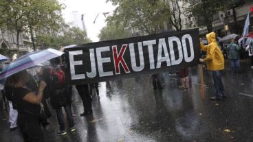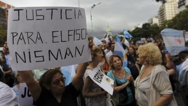 Entre los participantes se destacaron las banderas argentinas, los paraguas y los carteles con fotos del fiscal que estaba desde 2004 a cargo de la investigación del atentado a la Amia.