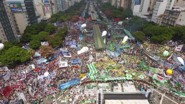1 de 8 | Una imagen aérea de la movilización. (Télam)2 de 8 | La marcha del 21F contra las políticas del gobierno. (EFE)3 de 8 | La marcha del 21F. (EFE)4 de 8 | Las banderas de la marcha. (EFE)5 de 8 | La marcha del 21F contra el gobierno nacional. (EFE)6 de 8 | La marcha del 21F fue multitudinaria en Buenos Aires. (EFE)7 de 8 | Críticas por la reforma previsional. (EFE)8 de 8 | La marcha del 21F contra el gobierno nacional. (EFE)