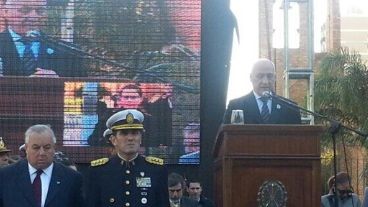 Luego, el gobernador se trasladó a la Plaza de Mayo de Santa Fe para dirigir un discurso en el desfile cívico militar.