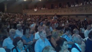 Afuera del teatro, sobre calle Laprida se cortó el tránsito y se instaló una pantalla para que todos pudieran seguir la charla.