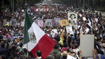 Miles de personas se manifestaron en la capital mexicana y varias ciudades del país y del mundo por el primer aniversario de la desaparición de los alumnos secuestrados por policías, en el sureño estado de Guerrero