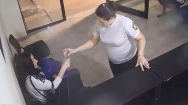 Las imágenes fueron difundidas este martes en Telenoche (El Tres). Son secuencias de una cámara ubicada en el hall de la delegación policial. Allí se ve cómo la mujer entra y sale en reiteradas oportunidades, dialoga con dos agentes mujeres y hasta toma dos vasos de agua ofrecidos por una oficial embarazada. También, cómo fue trasladada por la fuerza momentos antes del fatal desenlace.