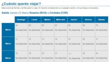 Quien quiera comprar un pasaje -desde cualquier aeropuerto a cualquier destino- no lo podrá hacer ni desde la web de Aerolíneas, ni desde otras ni en mostrador. Hasta el sábado inclusive los vuelos aparecen con la leyenda "No disponible".