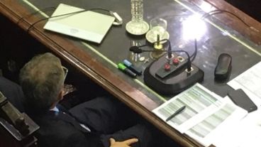 El presidente de la cámara de Diputados, Emilio Monzó, colocó en su escritorio dos fibrones, uno de color verde y otro celeste. Antes, había ubicado un crucifijo y una medalla.