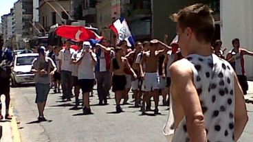El periodista describió que se vivía “un clima de mucha alegría”, donde predominaban “los “disfraces, los bombos y la música” y los estudiantes “se están divirtiendo con total tranquilidad”.