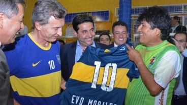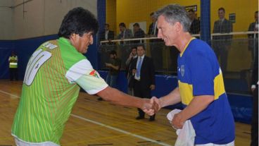 Con la camiseta de Boca y en las instalaciones del club que dirigió por años, el presidente electo Mauricio Macri jugó este miércoles al fútbol con el mandatario boliviano, Evo Morales, a sólo horas de asumir la jefatura de Estado.