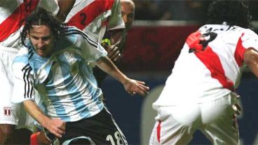 Perú, que no se refugió en el comienzo demasiado atrás, cada vez que cruzó la mitad de cancha provocó riesgo, sobre todo cuando la pelota la manejó Paolo Guerrero, quien estuvo a punto de convertir el primer gol del partido, aprovechando un error de Gabriel Heinze, pero su remate salió desviado.
