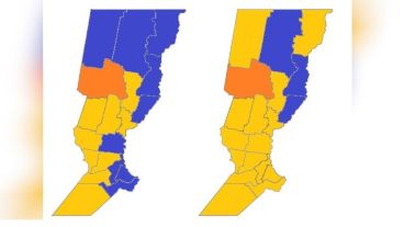 En el siguiente mapa de la provincia, pueden observarse pintados de color azul los departamentos donde ganó el Frente Justicialista; de color amarillo los de Cambiemos, y de anaranjado el del Frente Progresista.