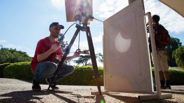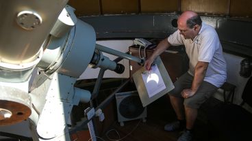 1 de 14 | Los rosarinos disfrutaron de un eclipse anular de sol. (Alan Monzón/Rosario3.com)2 de 14 | Un técnico muestra la proyección del eclipse en el telescopio principal del observatorio de Rosario. (Alan Monzón/Rosario3.com)3 de 14 | Lentes especiales para observar el eclipse. (Alan Monzón/Rosario3.com)4 de 14 | Distintos telescopios en el planetario. (Alan Monzón/Rosario3.com)5 de 14 | Un telescopio proyectando el eclipse en una base blanca. (Alan Monzón/Rosario3.com)6 de 14 | El calor no fue impedimento para observar el evento astronómico. (Alan Monzón/Rosario3.com)7 de 14 | Así se vio desde Rosario el eclipse anular de este domingo. (Alan Monzón/Rosario3.com)8 de 14 | Temperatura cercana a los 30º grados en el mediodía de Rosario. (Alan Monzón/Rosario3.com)9 de 14 | Grandes y chicos disfrutaron del evento astronómico. (Alan Monzón/Rosario3.com)10 de 14 | Celular en mano y a tratar de obtener una buena foto. (Alan Monzón/Rosario3.com)11 de 14 | Distintas actividades disponibles en el planetario de la ciudad. (Alan Monzón/Rosario3.com)12 de 14 | Un filtro protector para observar el fenómeno. (Alan Monzón/Rosario3.com)13 de 14 | Muchos rosarinos se interesaron por el fenómeno astronómico. (Alan Monzón/Rosario3.com)14 de 14 | El eclipse anular de sol comenzó a las 9.48 y finalizó pasada las 12 en Rosario. (Alan Monzón/Rosario3.com)