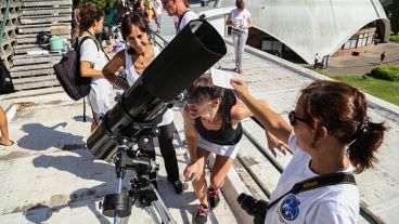 Desde las 9, cientos de rosarinos pasaron por el observatorio de la ciudad para apreciar el fenómeno astronómico. Telescopios de distintos tamaños estuvieron disponibles para observar el evento. Las fotos