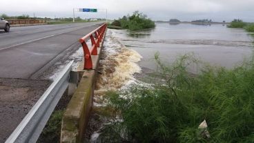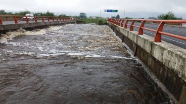 Al igual que sucedió meses atrás, las lluvias potenciaron el cauce y el mismo ya está ingresando al corredor vial, principalmente en la mano que se dirige hacia Rosario.