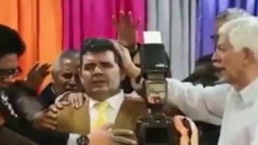 Con una mano sobre la frente de Olmedo, un pastor clamó antes del accidente: "No van a poder borrar los principios y valores cristianos de esta Nación y no se van a meter con nuestros hijos". "¡Viva la patria!", se puede oír en las imágenes, antes de que cediera la tarima.