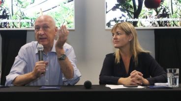 El precandidato a gobernador del Frente Progresista, Antonio Bonfatti, junto a la precandidata a intendenta de Rosario, Verónica Irizar, presentaron este viernes un programa con diez propuestas para aumentar la producción sustentable de alimentos a nivel local, como inversiones en tecnología e infraestructura, la creación de nuevos mercados de distribución y ayuda financiera a los productores.