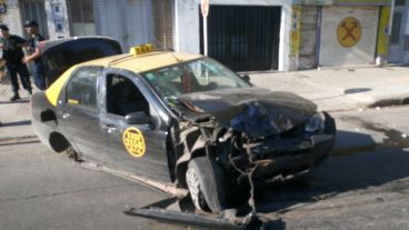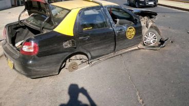 El taxi quedó muy dañado, pero igual continuaron la huida de la policía, hasta que perdieron el control del vehículo e impactaron contra un árbol en Presidente Perón entre Valparaíso y Río de Janeiro.