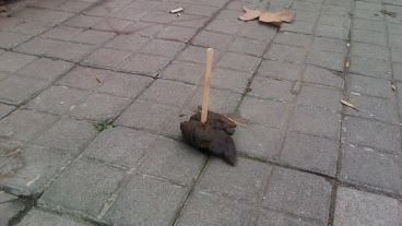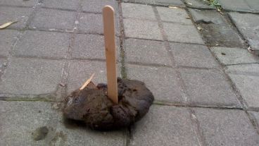 Por lo menos, quienes el sábado pasaron por la esquina de Rodríguez y Zeballos, tuvieron ayuda para evitar el “regalo” de un perro que su dueño obvió recoger: alguien le puso un palito de helado, a modo de señalización, y dejó una postal urbana diferente. Por cierto, nada tentadora.