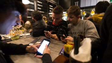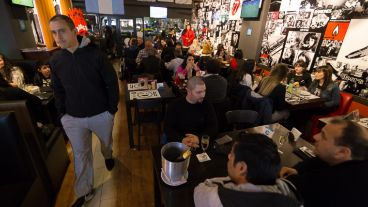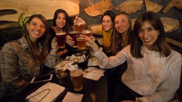 Desde Pichincha, cuatro amigas que están juntas desde la escuela primaria brindaron en vivo para el Tres y adentro del pub los festejos parecían que recién empezaban.
