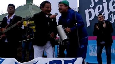 El DT es una celebridad en Junín tras haber obtenido la permanencia en primera con Sarmiento. Y lo festejó a pura cumbia arriba del escenario