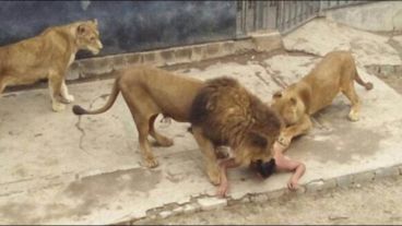 Dos leones del zoológico de Santiago de Chile fueron sacrificados este sábado para detener el ataque a un hombre se arrojó a la fosa de las fieras desnudo. Una cámara captó el momento. Las imágenes pueden herir la sensibilidad de quien las mire.
