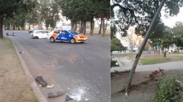 Un choque tuvo lugar esta madrugada en avenida Illia y Suipacha. Un auto impactó contra un porte de luz y perdió dos de sus ruedas. Dos jóvenes viajaban en el coche y sufrieron lesiones.